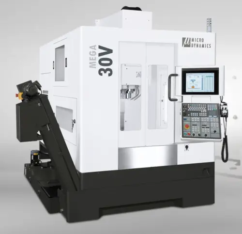 The Micro Dynamics Mega 30V Vertical Machining Center was designed for the machining of all workpieces small to medium in size. The rigidity and the power of the machine, coupled with its Dypec Thermal Compensation, makes the machine one of the most accurate and versatile machining centers available for all types of manufacturing facilities. From aerospace, to medical, to general job shops. It’s the complete machine at a very affordable price.