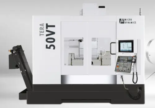 The Micro Dynamics Tera 50VT Vertical Machining Center was designed for the machining of all workpieces small to medium in size. The rigidity and the power of the machine, coupled with its Dypec Thermal Compensation, makes the machine one of the most accurate and versatile machining centers available for all types of manufacturing facilities from aerospace, to medical, to general job shops. It’s the complete machine at a very affordable price.