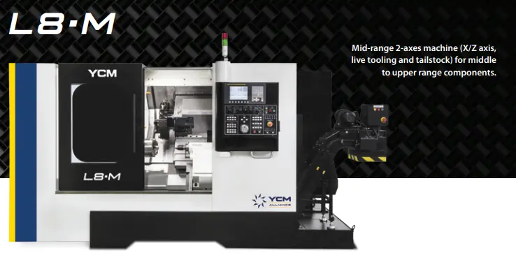 YCM L Series turning centers have a robust one-piece base casting to help distribute cutting forces, reduce vibration, and structural deformation. Multiple configurations available, from 2-axis to multi-axis turning, static to live-tool turrets, programmable tailstock to sub spindle making the L Series an excellent choice for middle to upper range components.
