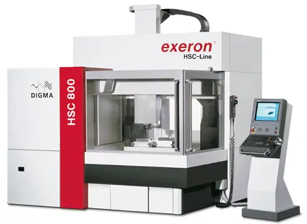 Explore the new EXERON HSC 800/3 Vertical Machining Center! Features 35.43" X-axis, 31.5" Y-axis, 20.47" Z-axis, 33.5 hp, and a rapid 40,000 RPM. Perfect for precise machining tasks.