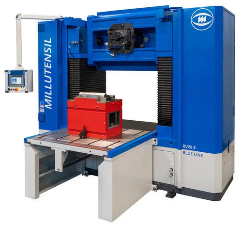 BV 28 E is the advanced version with a hydraulic system controlled by electronic servo proportional valves and a control of parallelism through Heidenhain optical lines. The BV 28 E is equipped with user-friendly graphics control panel, monitored through Siemens PLC commanded by Touch Panel.