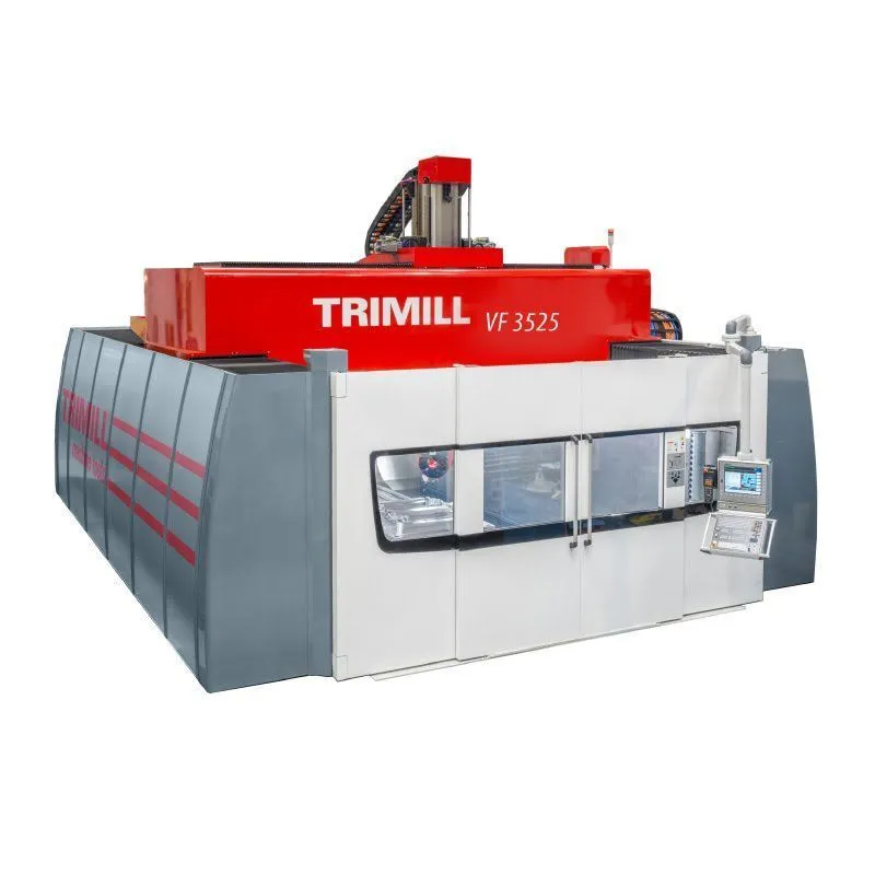 The VF Series shares the TRIMILL trademark of rigidity and thermal stability with its box-in-box gantry design, UHPC (ultra high performance concrete) concrete U-shaped based with sidewalls, resulting in high accuracy and repeatability.