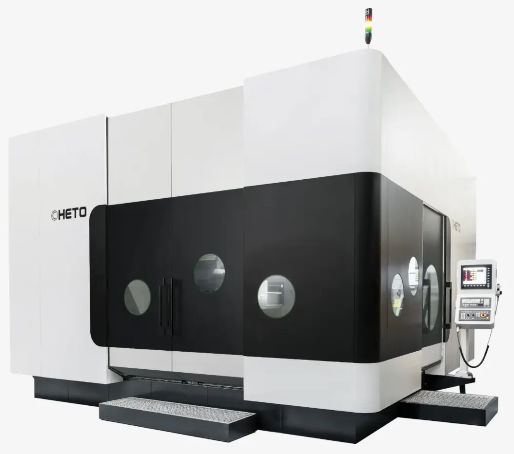 The CHETO PTT 2500 Series deep-hole drilling with milling machine is versatile and can be used for drilling and 5-axis milling applications, being equipped with a 5 ton tilting rotating table. The PTT 2500 features single-stroke drilling (W) of 66.9” (1,700 mm) and a max combined drilling stroke (W+Z) of 66.9” (1,700 mm) x 31.5” (800 mm). Absolute linear encoders in the X, Y, and Z axes and absolute angular encoders in the A and B axes deliver repeatable high-precision drilling and cutting. Quick changes from drilling to milling, an automatic chip conveyor, and easy CNC or electronic handwheel operation make the PTT 2500 flexible and easy to use.