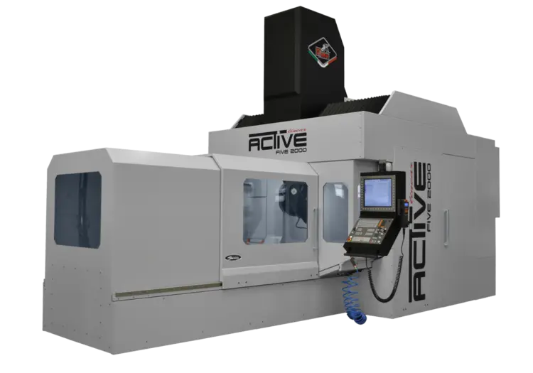 The model ACTIVE FIVE is a high speed working center with fixed portal and mobile table solution characterized by a very compact and ergonomic line. The machine is equipped with a head to two continuous working axes. The planning with the aid of the system FEM has allowed to optimize the calculation to finished elements making the particularly rigid structures of this model with the total elimination of the vibrations in phase of milling. If to this are added the low attritions and the elevated accelerations of the axes, are gotten so all the characteristics that allow to get particularly bright dynamic performances is in finish, that in roughing, to advantage of the economy of the whole cycle of milling.