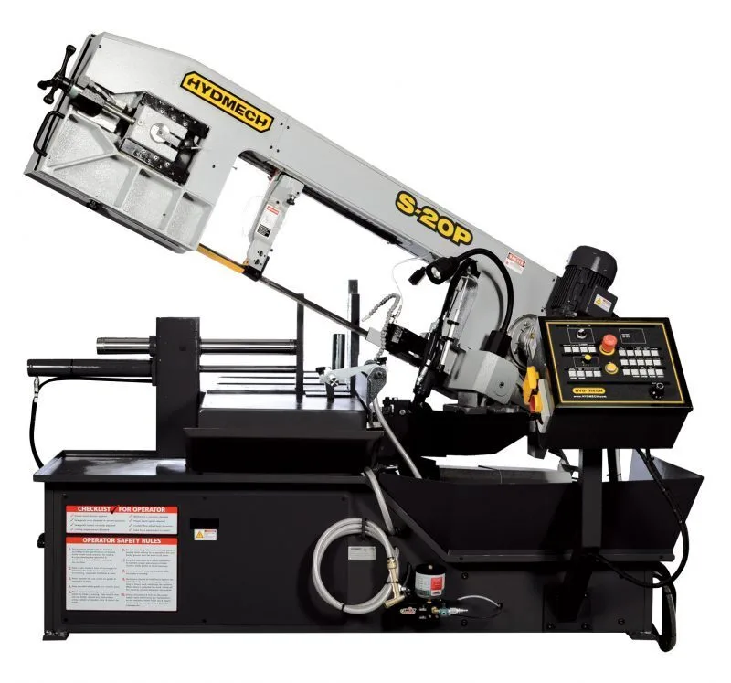 The S-20P semi-automatic scissor style band saw features a swing head design and provides exceptional miter cutting capability for light to medium duty applications.