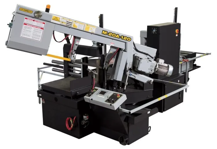 The M-20A-120 is a heavy-duty automatic horizontal pivot band saw, its ability to miter cut from 90 to 60 degrees makes it an excellent machine for large fabrication jobs.