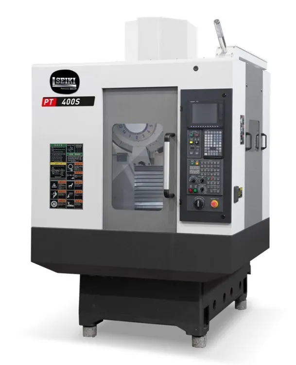 The PT-400S is the fastest CNC milling and tapping center in its class and is also well suited to graphite machining as well high speed 3D machining. This machine will exceed the demands of any manufacturer with high volume, high precision machining needs. The compact size consumes very little valuable floor space while the blazing speed will deliver more parts per hour than the competition. The machine is a fixed column / moving table type design.